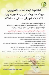 یازدهمین دوره انتخابات شورای صنفی دانشجویی برگزار می گردد.