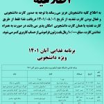 برنامه غذایی آبان ۱۴۰۱ ویژه دانشجویان